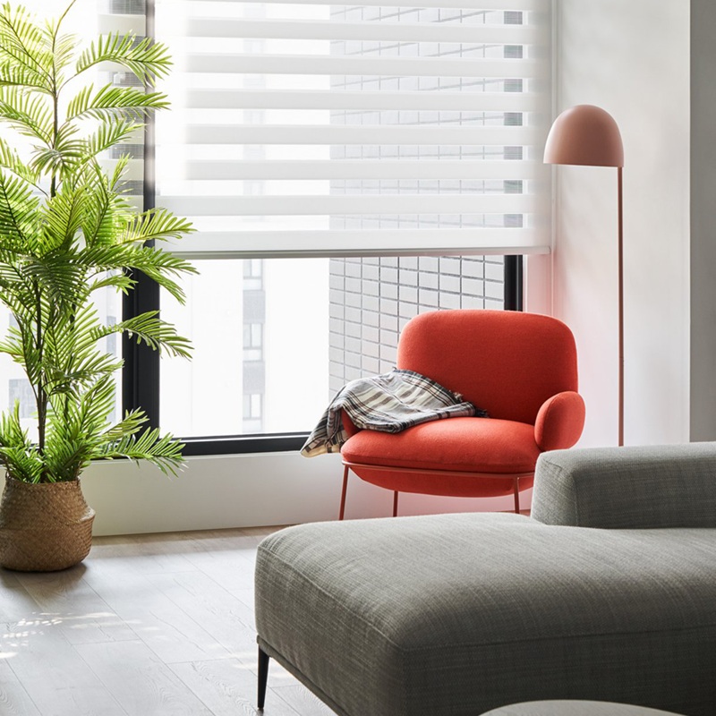 这是一个温馨治愈的现代北欧风空间设计,整体以柔和的色彩和简洁的线条营造出舒适松弛的居住氛围。